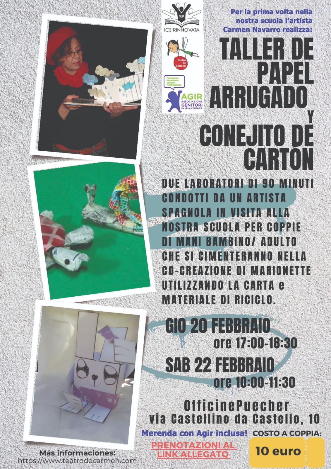 Non perderti questa occasione! Prenota per te e il tuo piccolo e vieni a creare marionette e magie di carta insieme a Carmen.